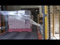 The video shows the PRTA-2200 Automatic Rotary Arm at the customer warehouse wrapping skids of bricks.